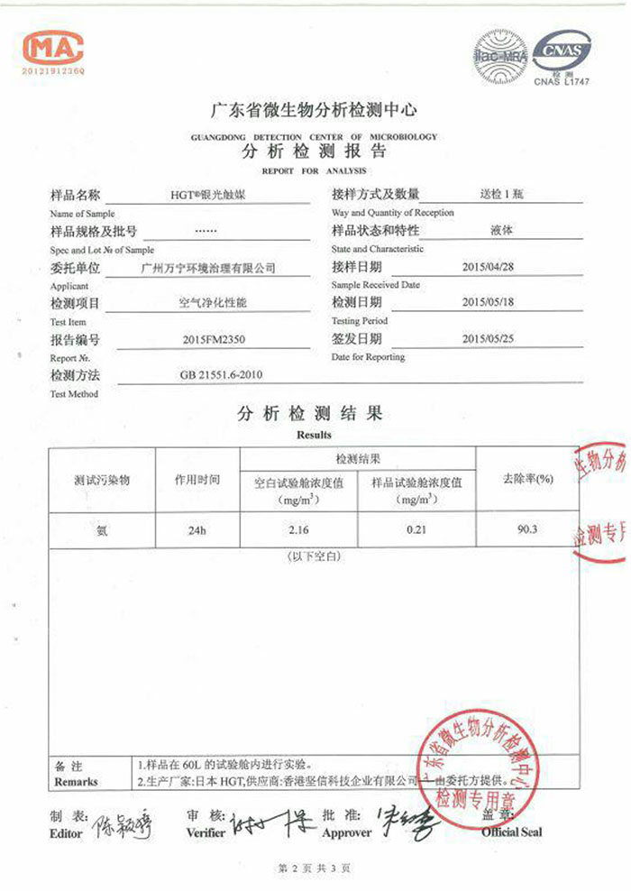 廣州萬寧環(huán)境治理有限公司前身是廣州市匡琦貿(mào)易有限公司,成立于2002年,屬香港堅(jiān)信科技企業(yè)公司中國地區(qū)營運(yùn)總部,負(fù)責(zé)環(huán)境治理系列產(chǎn)品的進(jìn)口、技術(shù)指導(dǎo)、工程施工及招商工作。2015年日本總部成功開發(fā)出HGT超級(jí)銀光觸媒,該產(chǎn)品利用飛米技術(shù)將二氧化鈦和銀離子結(jié)合,產(chǎn)生強(qiáng)大的氫氧自由基,能在一分鐘內(nèi)凈化空氣。我公司作為HGT品牌中國營運(yùn)總部,獨(dú)家銷售最新一代頂尖技術(shù)光觸媒產(chǎn)品,新產(chǎn)品徹底去除甲醛、強(qiáng)效殺...